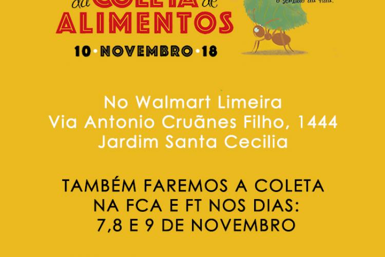 Nesse ano, a coleta em Limeira ocorrerá no dia 10 de novembro no supermercado Walmart, das 8h às 19h, e terá como destino dos produtos arrecadados a instituição religiosa dos Vicentinos da cidade. Além de contribuir doando, você também pode colaborar sendo voluntário na arrecadação desses alimentos no dia do evento se inscrevendo no seguinte link: bit.ly/2018coleta