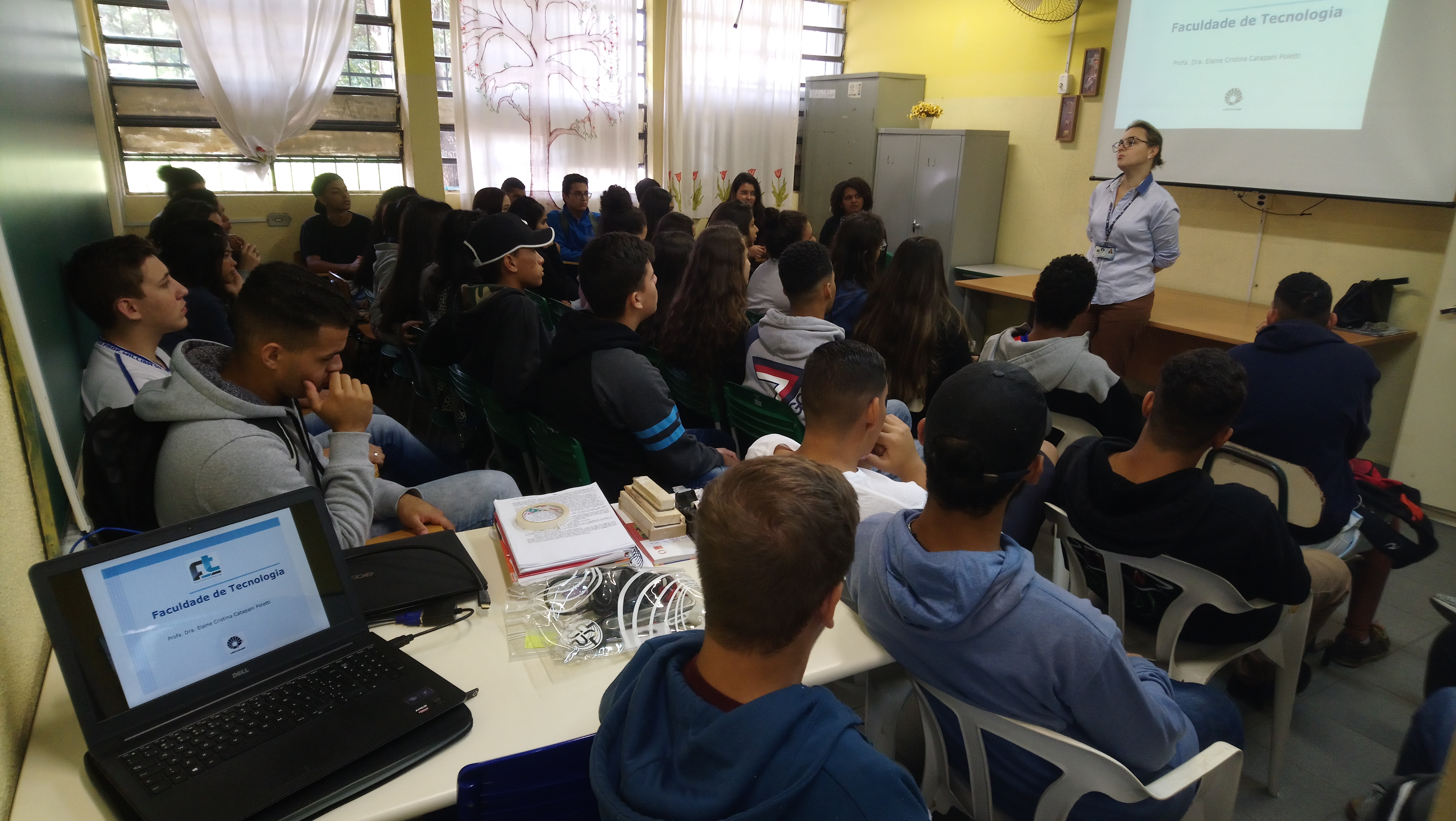 O Prof. Dr. André Franceschi de Angelis e a Profa. Dra. Elaine Cristina Catapani Poletti realizaram, no dia 08/11, uma divulgação dos Cursos da FT, Vestibular, PIBIC-EM e CAF na escola EE Prof. William Silva.
