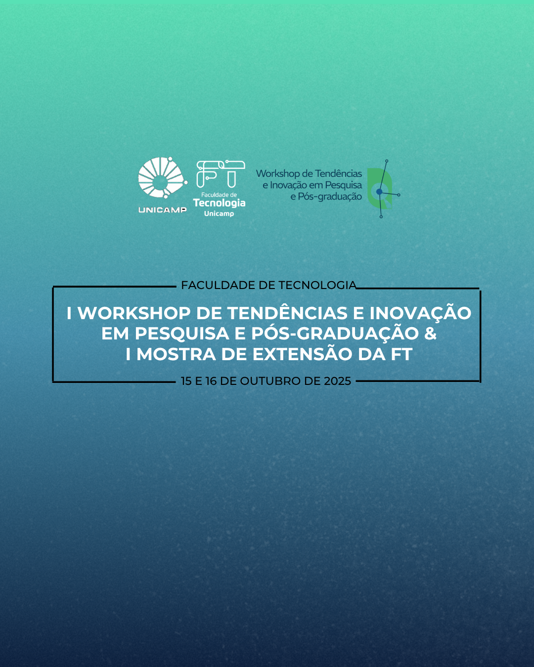 A Faculdade de Tecnologia da Unicamp (FT) realizará, nos dias 15 e 16 de outubro de 2025, em Limeira/SP, o I Workshop de Tendências e Inovação em Pesquisa e Pós-Graduação, em conjunto com a I Mostra de Extensão da FT.
